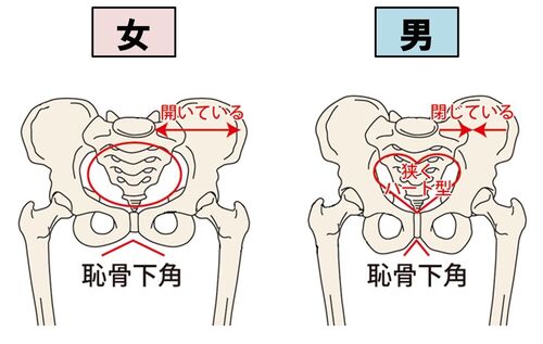 「骨盤の性差」についてまとめます。 女性は横長 男性は縦長 腸骨翼:女性は開いている 仙骨岬角:男性の方が突出が強い→骨盤上口:ハート型 恥骨下角:女性の方が大きい(女性80°、男性60°) 仙骨:女性の方が幅が広く、短い ◆確認問題(note)⇩ 理学療法士…